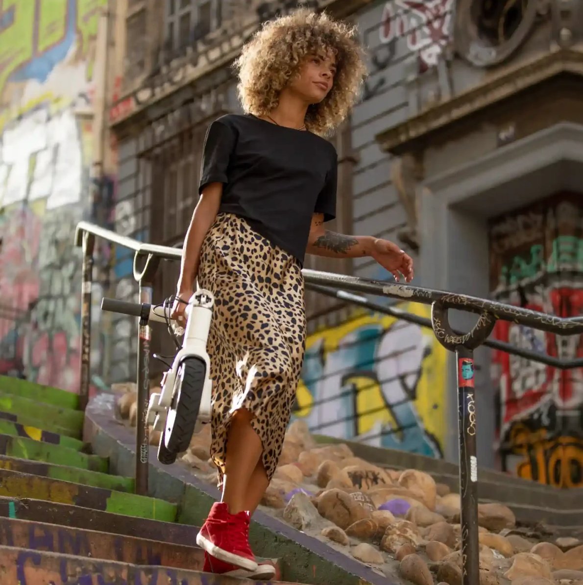 Connects to the OKAI app to unlock smart features like lighting control, ride stats, and scooter lock