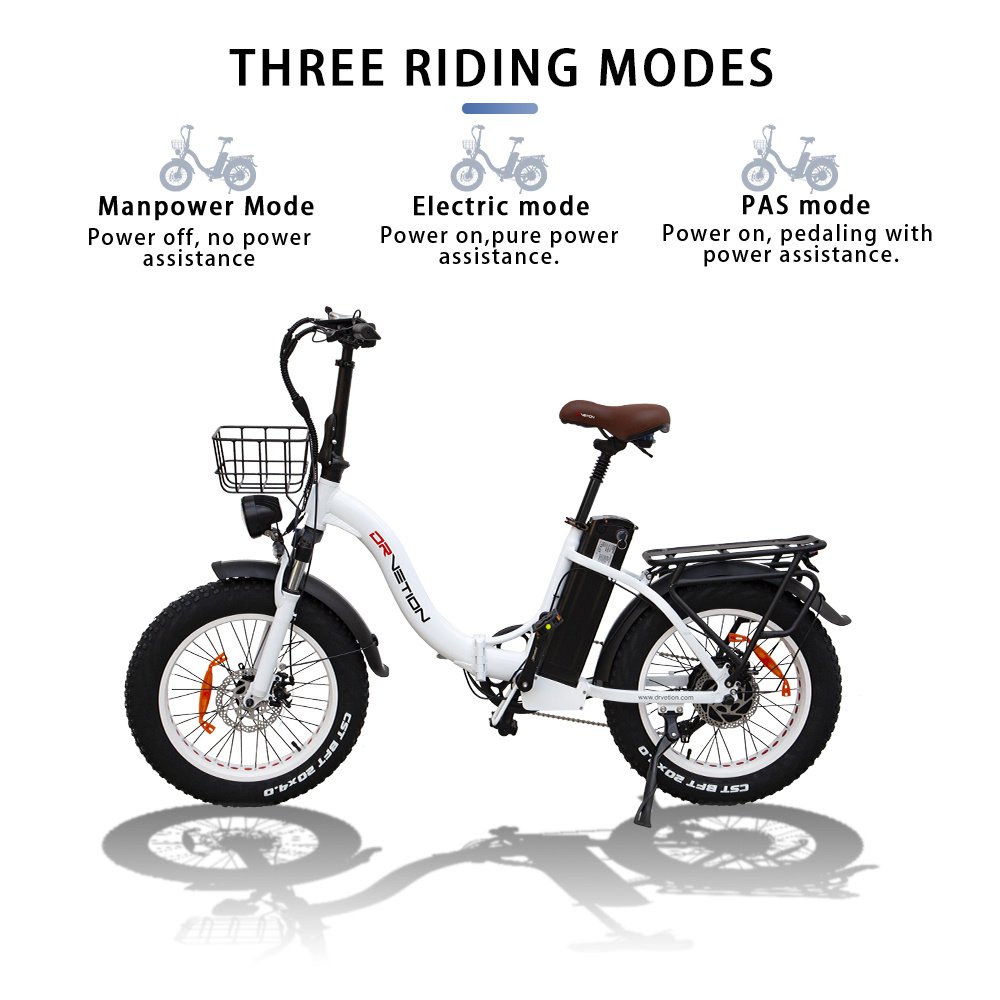 20×4.0 Inch Foldable Fat Tire Electric Bike 48V 12.5AH Extended Range Dual Disc Brakes Fenders